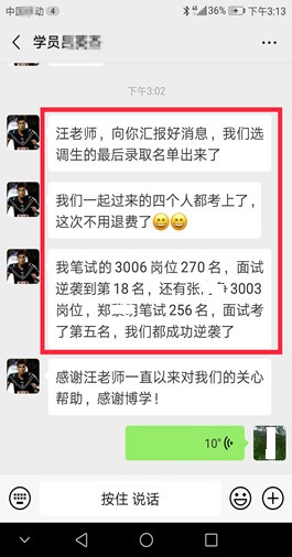 面試上岸有保障(指最終報考單位錄取)。 歷年來,事業(yè)單位面試培訓(xùn)班上岸率有保障,均有據(jù)可查。博學(xué)面試課程體系無論是課程的深度、廣度、實戰(zhàn)性還是歷屆學(xué)員口碑和美譽度都遠(yuǎn)高于其他同類輔導(dǎo)機構(gòu)。面試狀元、最后一名反超成功的比比皆是。 |
